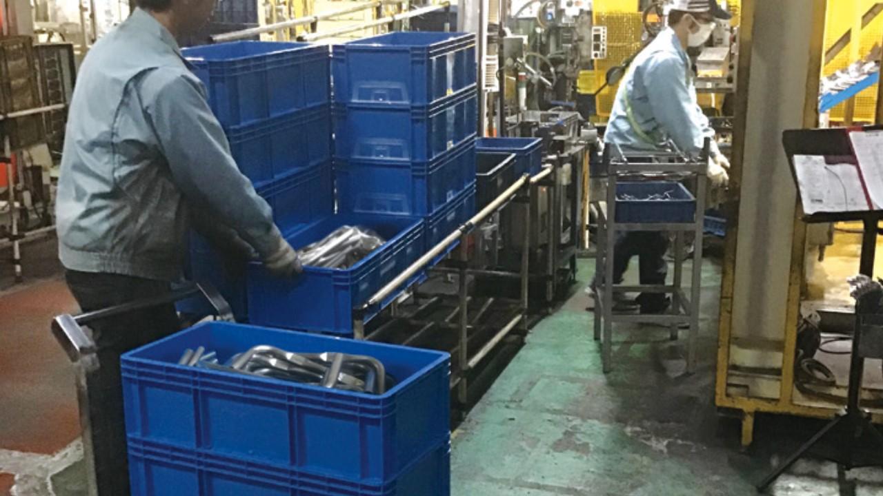 In automotive manufacturing plants, parts are loaded into containers, each designated for specific components, and transported to production line. These containers are managed using barcodes and returnd after assembly work on the vehicle is completed.