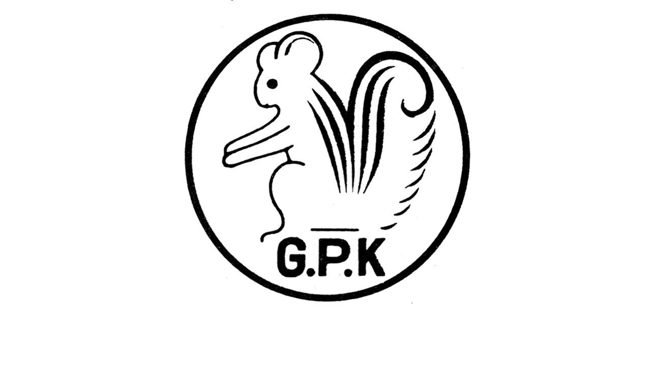 The thick line extending upward symbolizes freedom and creativity, and the letter "R" in white represents the expansion of the entire group.