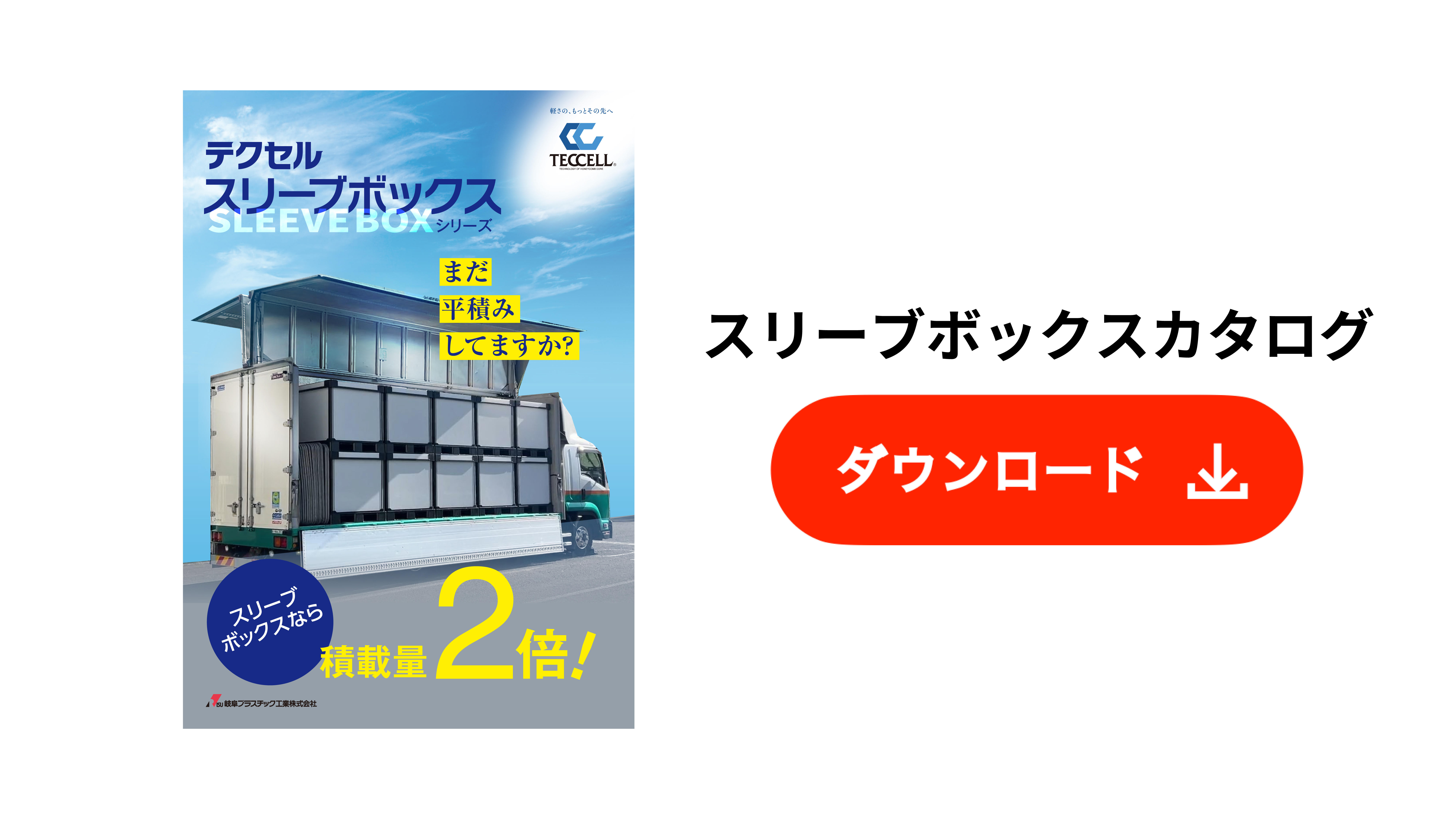 Among our sleeve box series, this is the lightest, reducing the workload. With the ability to double the cargo capaciry in trucks, it significantly improves transportation effeciency.