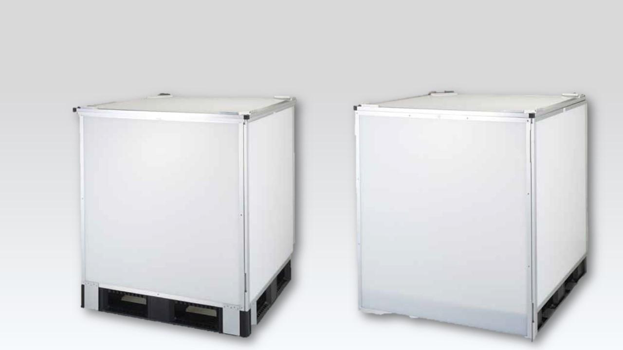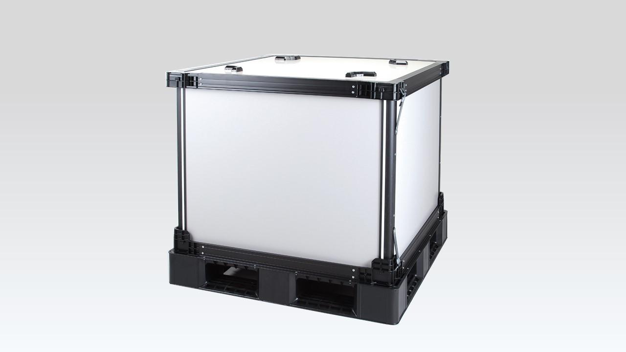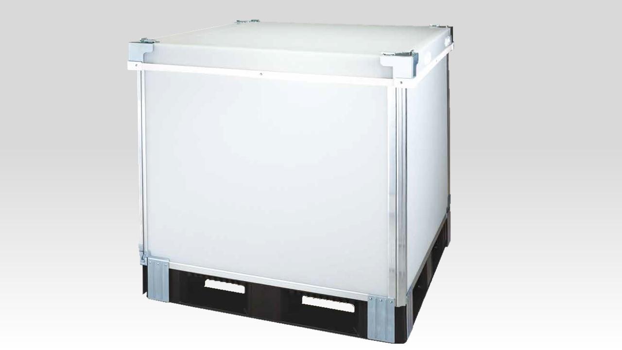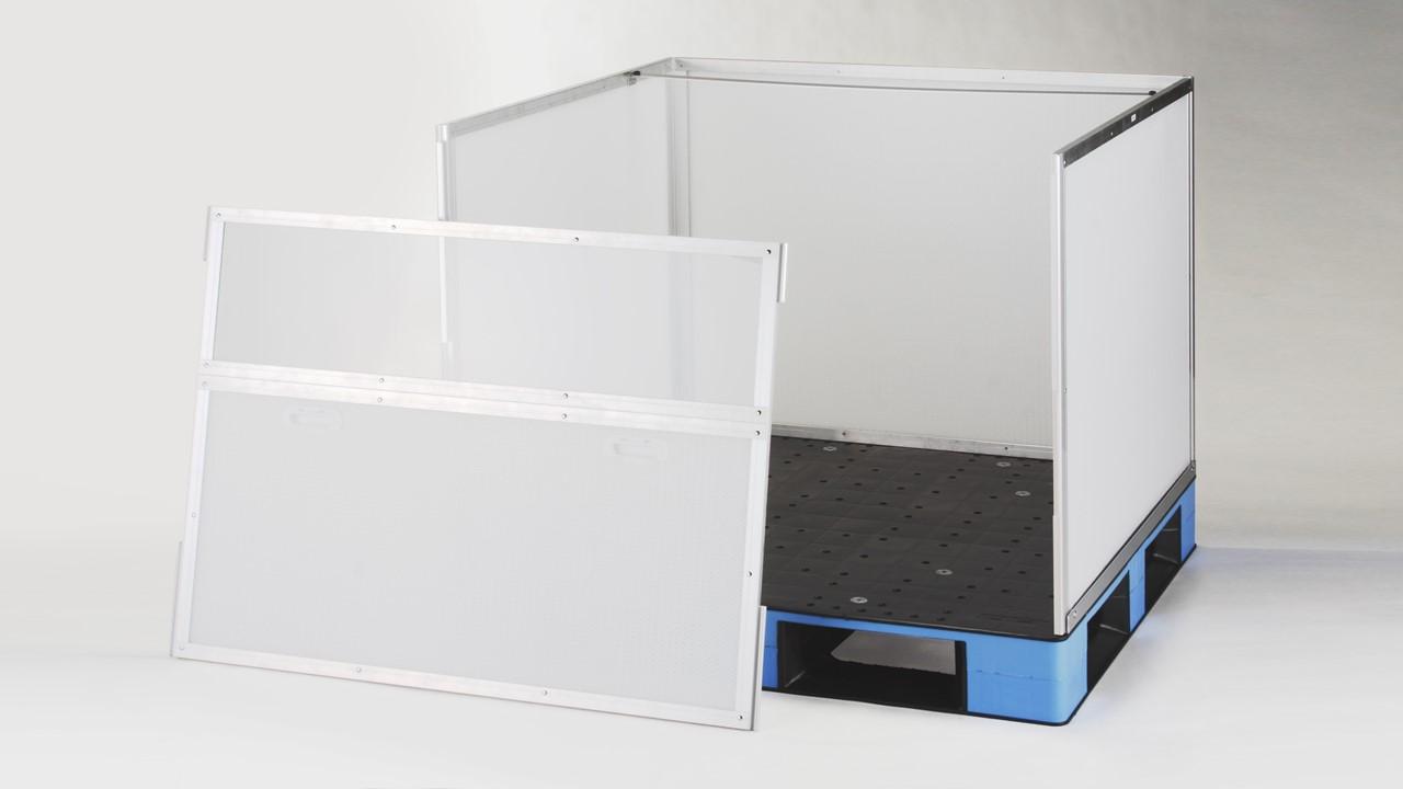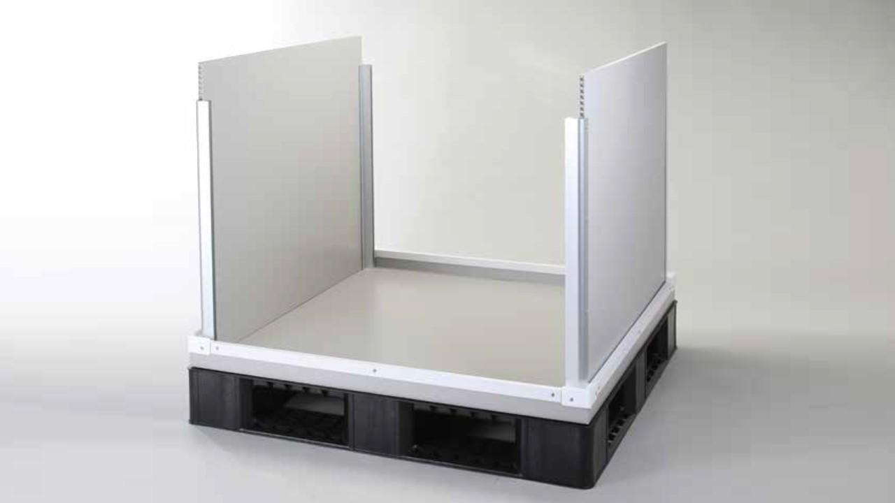 This sleeve box placed over cargo while it's on a pallet. The two outer panels are integrated, making assembly a smooth process.