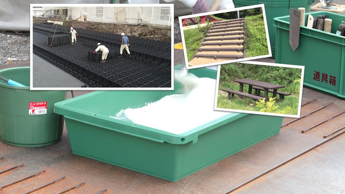 リス興業の雨水貯留浸透槽「リスレインスタジアム」は、プラスチック製の部材を嵌合して積み上げ、複数のトンネル構造部を有した形成物を、遮水シートまたは透水シートで包むことにより、雨水貯留槽や浸透槽を構成します。